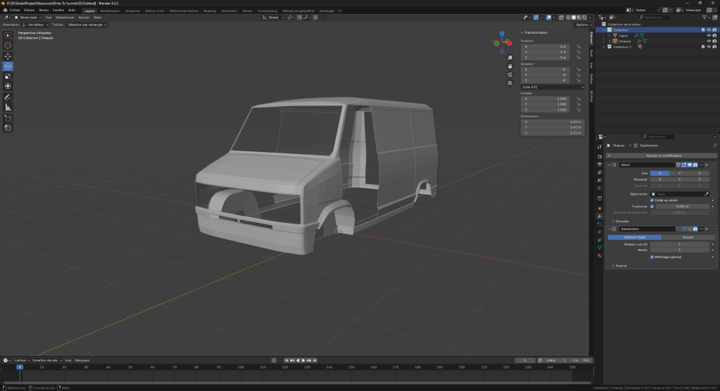 J’ai aussi entamé la modélisation du van, la forme de base je l’ai déjà même si je travaille toujours sur le style graphique qu’il aura au final.