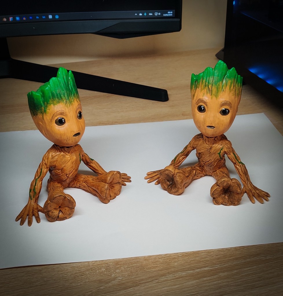 Voilà le premier projet en impression résine, enfin les corps sont en résine et les têtes en PLA. J’ai eu des petit soucis sur mes impressions résine, des lignes de démarcation se formaient entre certaines couches, un problème souvent dû au temps d’exposition trop court et à une mauvaise orientation de la pièce.